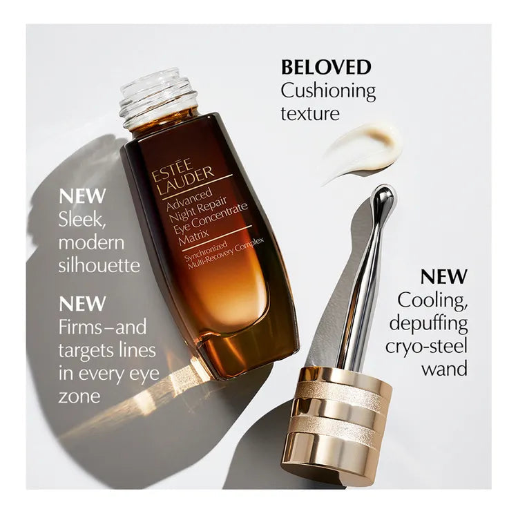 The Estee Lauder Advanced Night Repair Eye Concentrate Matrix Synchronized Multi-Recovery Complex is a cutting-edge eye treatment designed to address multiple signs of aging around the delicate eye area. This innovative formula targets key areas such as lines, wrinkles, puffiness, and dryness, providing comprehensive multi-recovery benefits. It contains Estee Lauder's exclusive ChronoluxCB™ technology, which helps to optimize the skin's natural repair process, promoting a youthful, radiant appearance. With continued use, this eye concentrate helps to strengthen the skin's moisture barrier and reduce the look of dark circles, leaving the eye area refreshed, revitalized, and visibly rejuvenated.