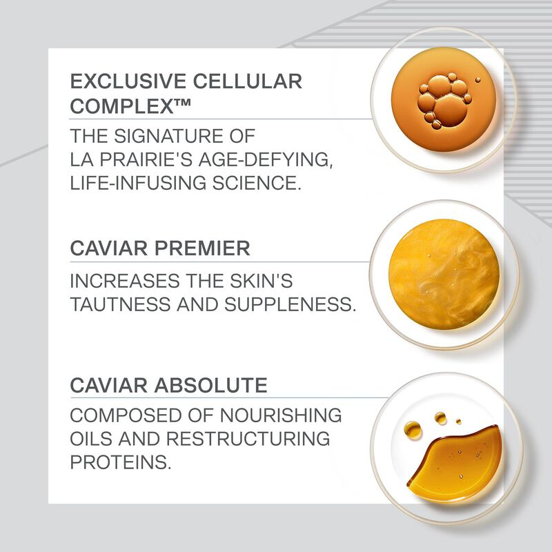 - Caviar Technology: Rich in caviar extract, this serum replenishes essential nutrients and helps strengthen the skin’s natural structure, enhancing resilience and elasticity.