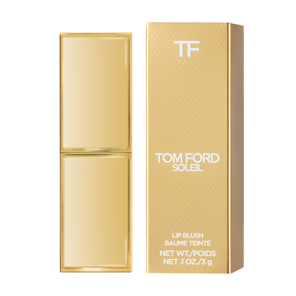 The "Tom Ford Soleil Lip Blush" is a luxurious lip product that combines the richness of a lipstick with the sheen of a lip gloss. This innovative formula provides a lightweight, comfortable feel on the lips while delivering intense color payoff and a radiant finish.Infused with nourishing ingredients, including jojoba oil and vitamin E, the Soleil Lip Blush helps to hydrate and condition the lips, leaving them feeling soft, smooth, and supple. Its creamy texture glides on effortlessly, imparting a sheer wash of color that can be built up for a more intense look.Available in a range of flattering shades, from soft nudes to bold berries, the Soleil Lip Blush adds a touch of sophistication and glamour to any makeup look. Whether worn alone for a natural, understated finish or layered over lipstick for added depth and shine, this versatile lip product is a must-have in any beauty arsenal.